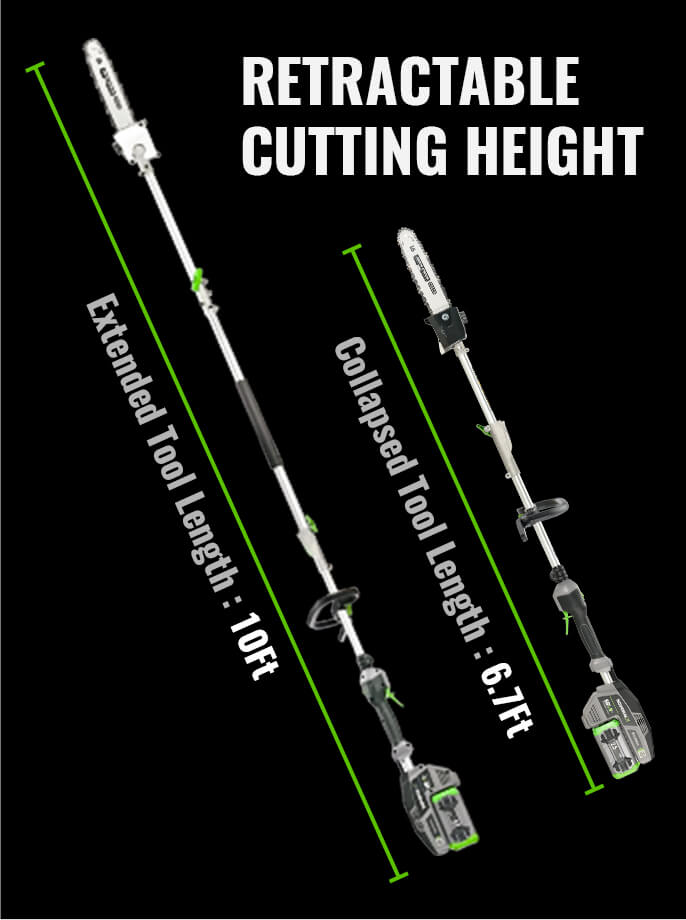 The retractable extension pole adjusts from 6.7 to 10 feet, giving you full control over cutting height. Collapse it for easy storage or transport, extend it for maximum reach—perfect for trimming tall trees or shaping mid-level shrubs without switching tools.