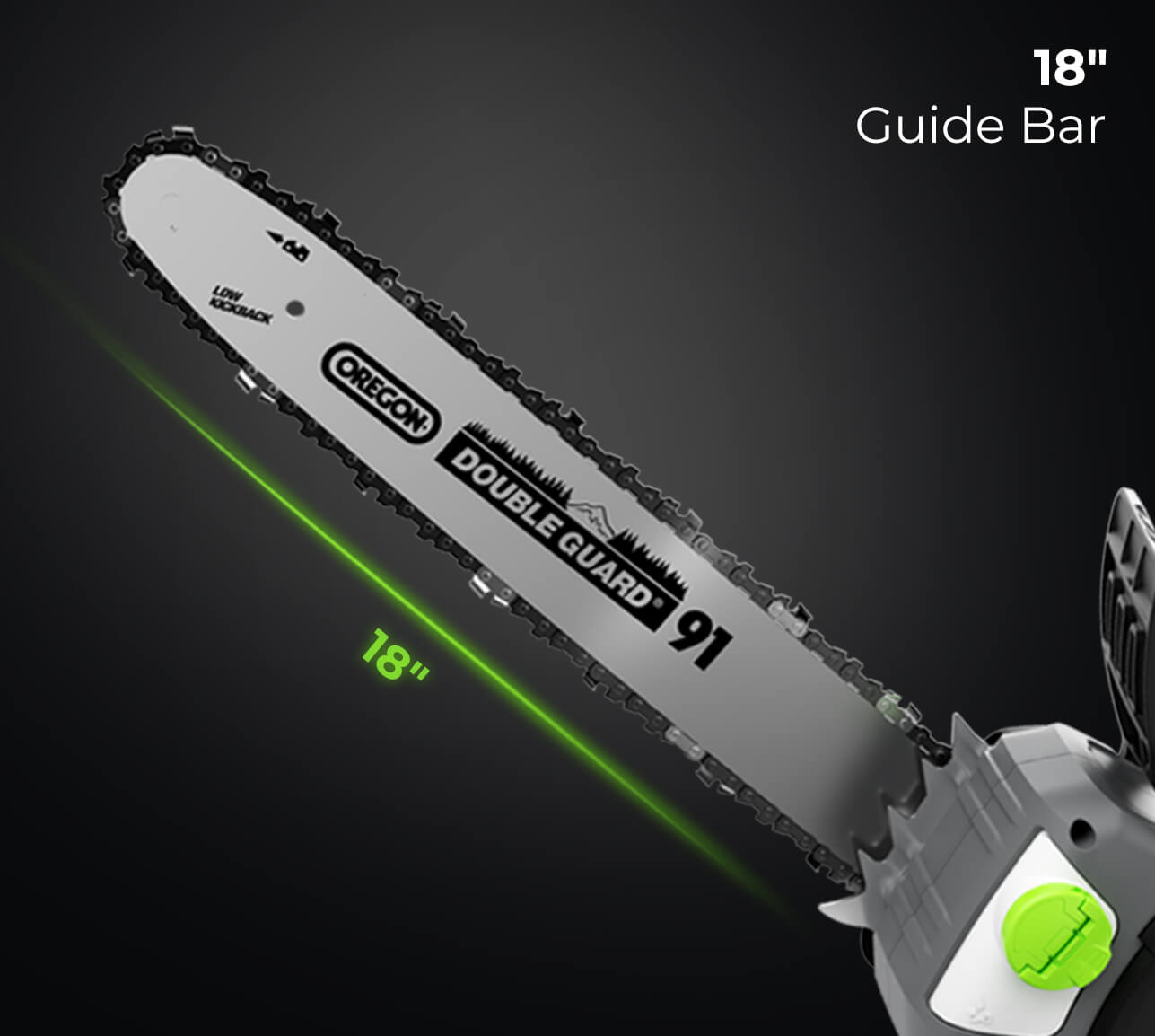 The 18-inch bar cuts through thicker logs and larger limbs with ease—making it ideal for landscaping, firewood prep, and heavy-duty yard cleanup. Paired with a high-efficiency motor, it delivers faster, cleaner, and deeper cuts every time.