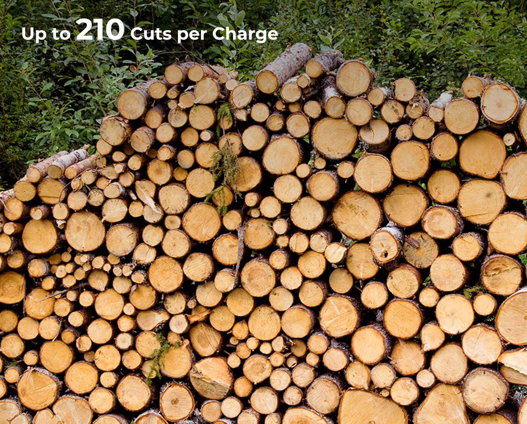 | Cutting Efficiency | Up to 210 cuts of 4"×4" lumber per charge |