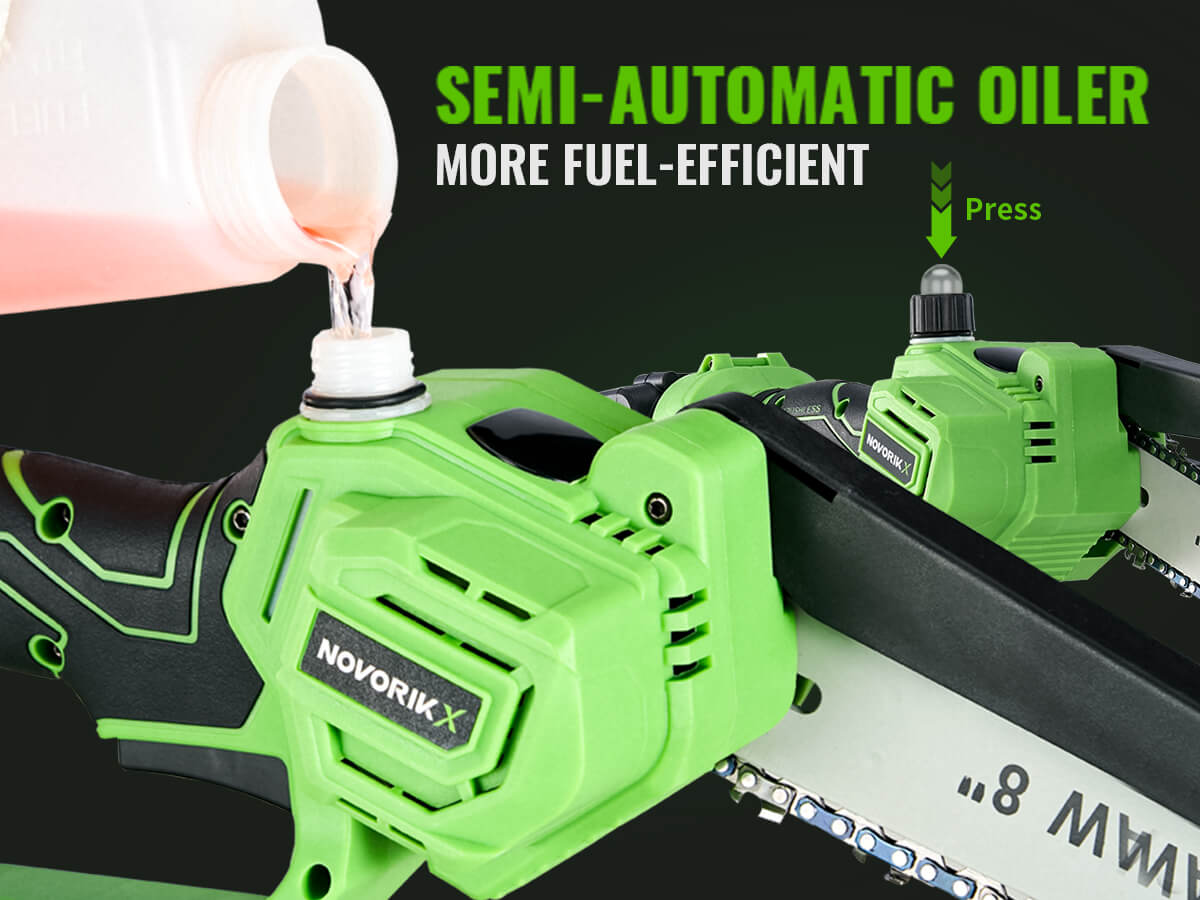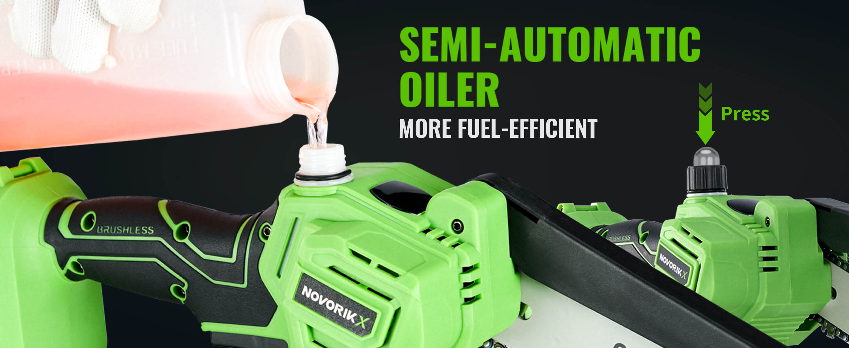 No more wasted oil or messy operation. The semi-automatic oiler system lets you lubricate the chain only when needed with a simple button press. This on-demand control helps reduce chain wear, ensures smoother cuts, and extends the life of your bar and chain.