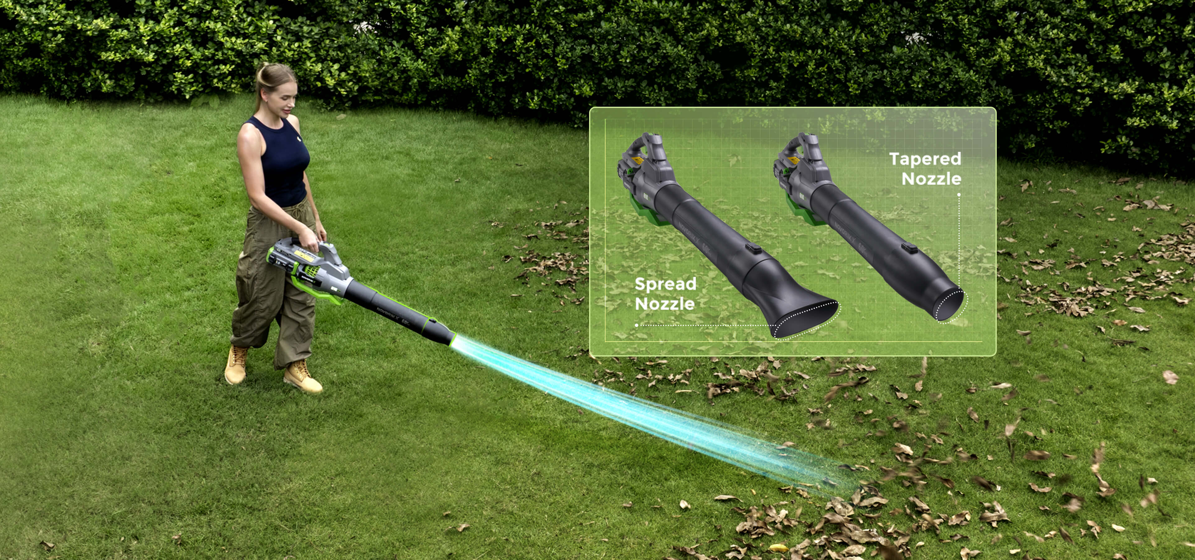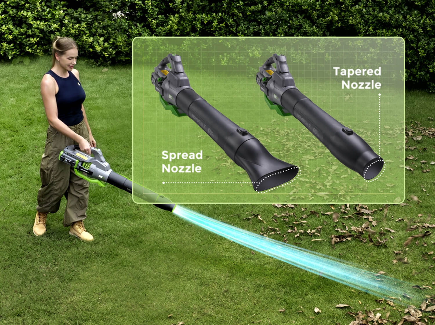 The detachable extended nozzle allows you to reach under bushes, along fences, and across wide areas without bending. It also helps concentrate airflow for more focused debris removal—making heavy-duty jobs more effective and comfortable.