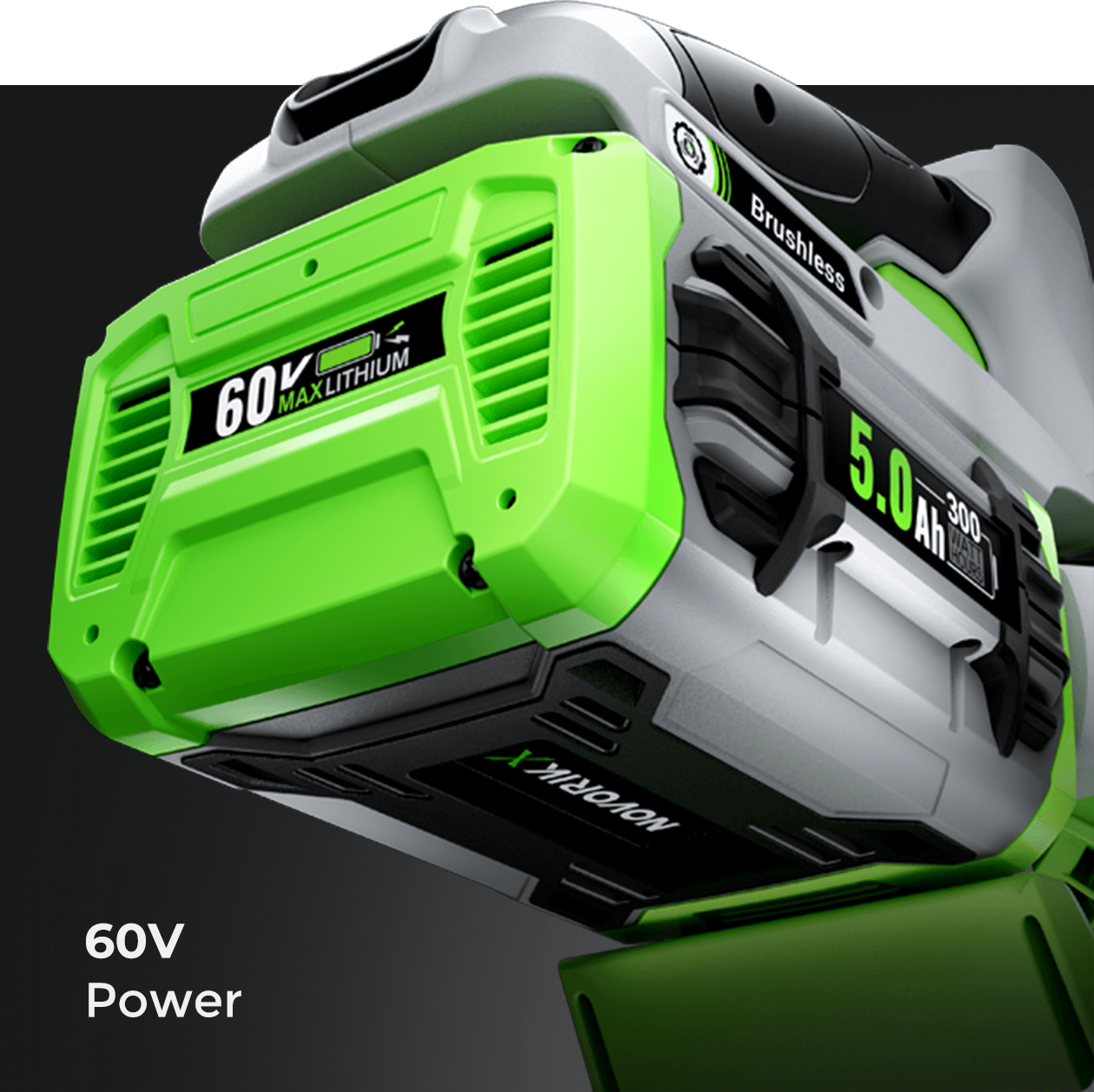 Yes, perfectly compatible! This is a major advantage of the NovorikX 60V ecosystem. The battery used in this machine is interchangeable with any NovorikX 60V outdoor tool you already own, such as a lawnmower, hedge trimmer, or chainsaw.