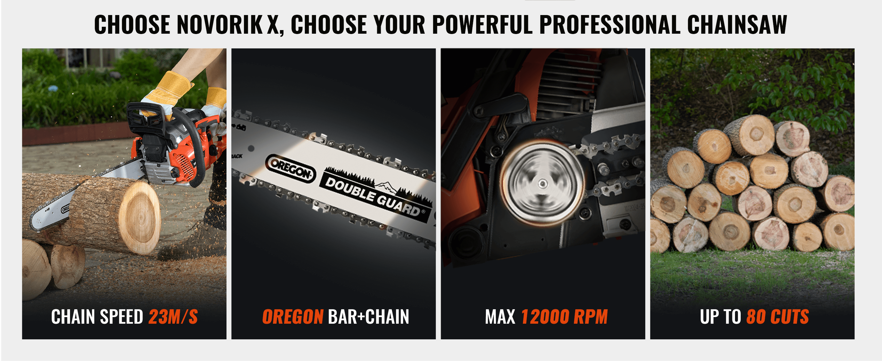 This chainsaw includes an 18-inch and a 20-inch chain and bar with precision-engineered teeth for smoother and faster cuts. Designed to handle tough jobs, it can cut through up to 80 pieces of 20-inch logs with ease. The air injection cleaning system extends the chain's lifespan and reduces maintenance, ensuring reliable and consistent performance.
