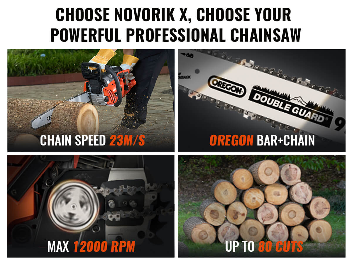 Equipped with a 50cc 2-Cycle 2.8HP engine, this gas chainsaw delivers exceptional cutting power for all your outdoor needs. With a maximum speed of 12,000 rpm and a torque of 1.5NM, it ensures efficient performance, whether you're trimming branches or cutting logs. The lightweight design adds to its versatility, making it perfect for home and professional use.